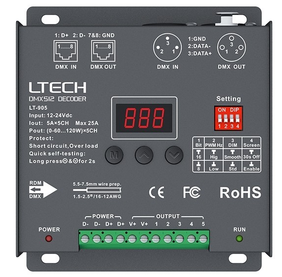 Ltech 5CH CV DMX Decoder LT-905 CV DMX512 Decoder